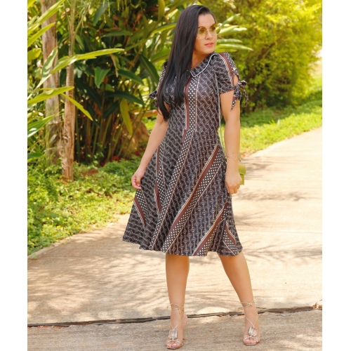 8623 - VESTIDO DE SUPLEX ESTAMPADO PRETO - PRONTA ENTREGA